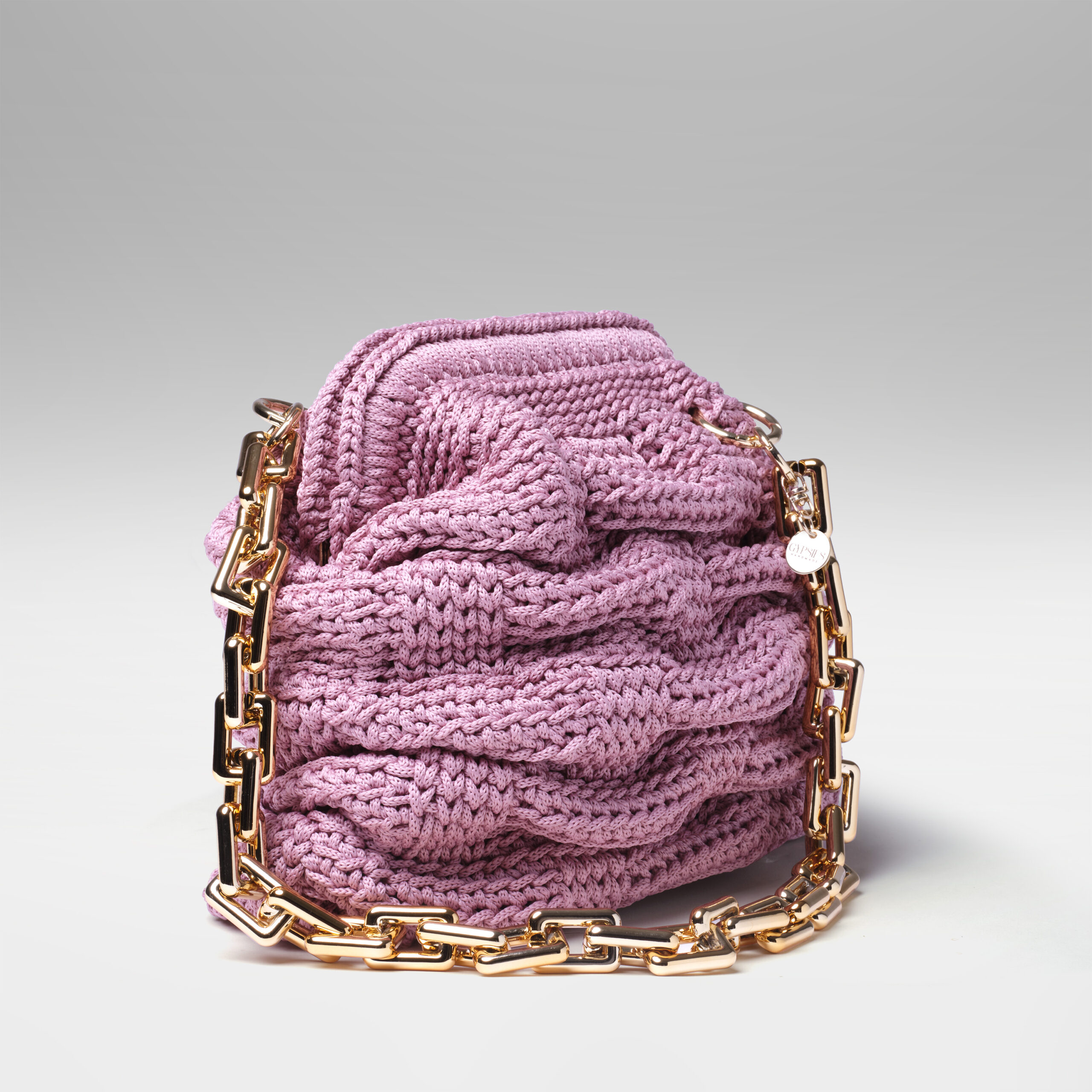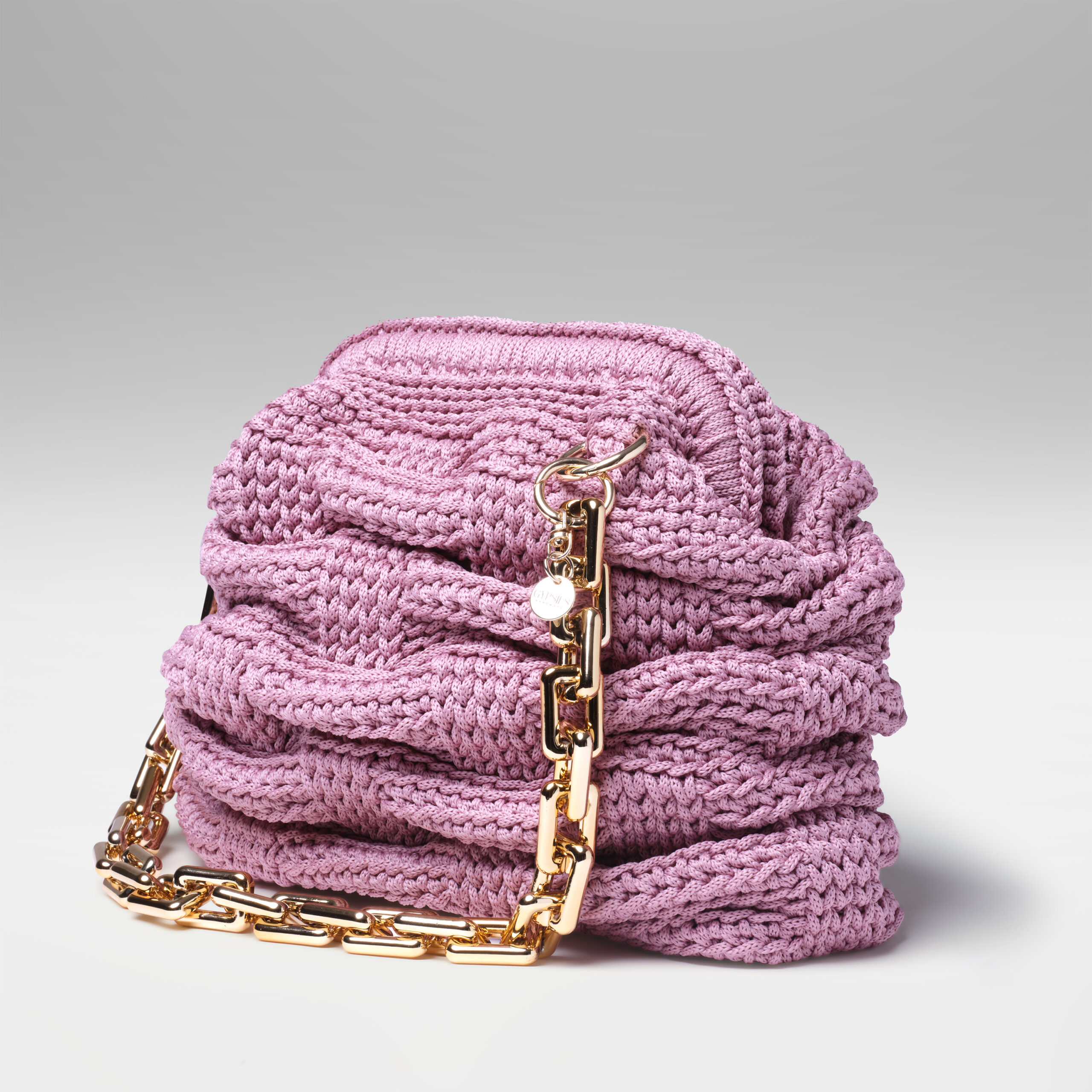 Bolsa em Fio Náutico na Cor Rose com Detalhes em Resina Dourada