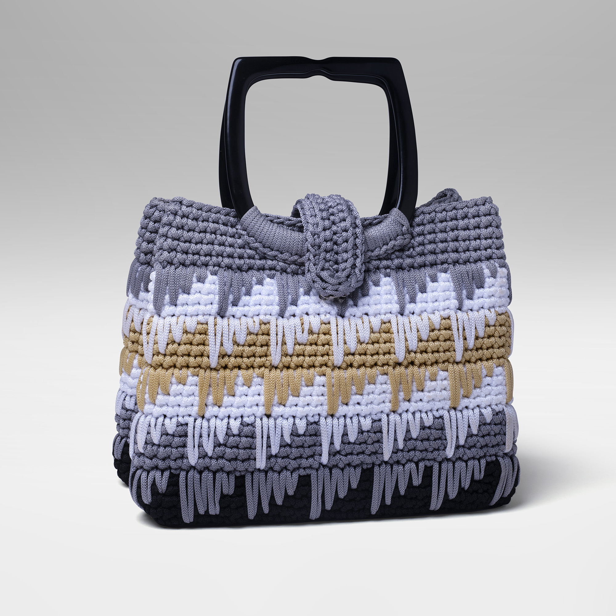 Bolsa em Fio Náutico Preto com Detalhes em Fio de Cetim ChampanheDescubra a sofisticação única da nossa Bolsa, que combina o clássico fio náutico preto…