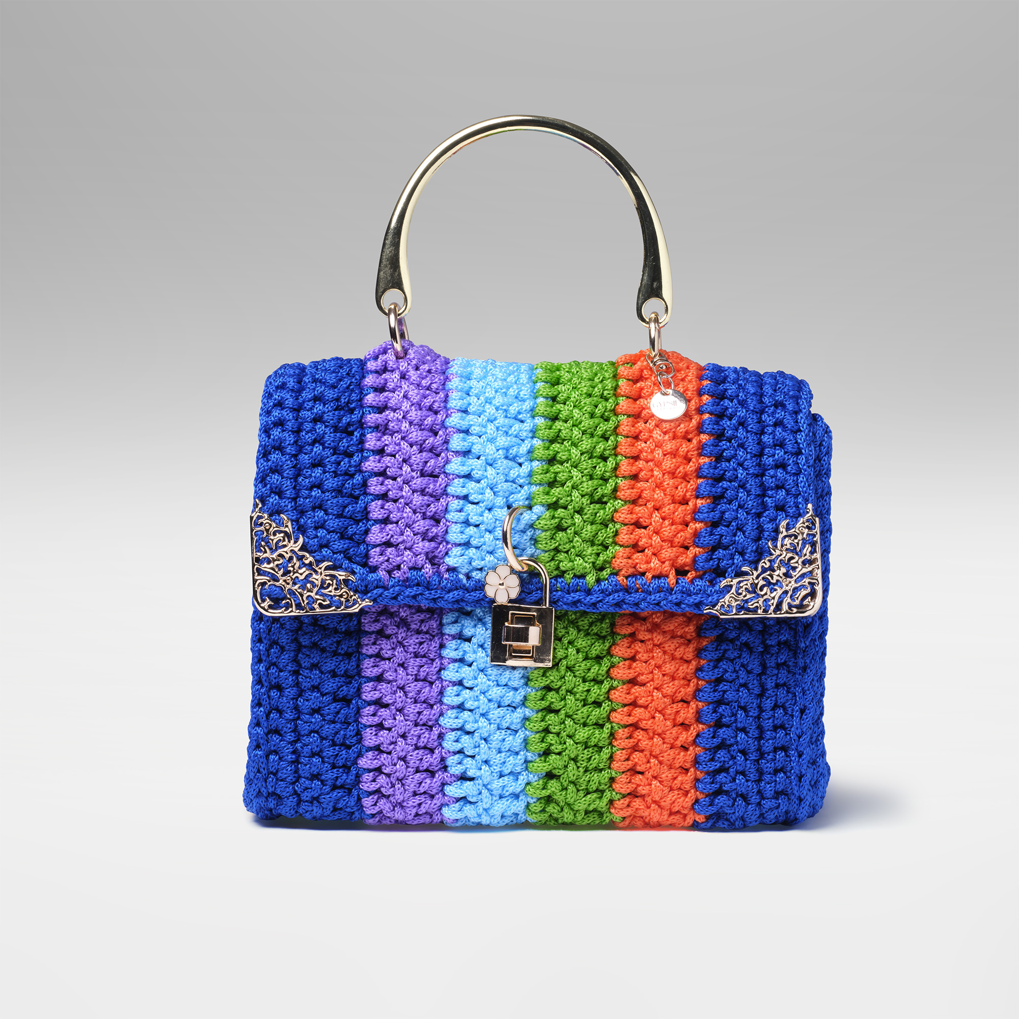 Bolsa em Fio Náutico com Detalhes em Crochê e Metal Descubra a elegância e o estilo artesanal da nossa Bolsa em Fio Náutico na cor…